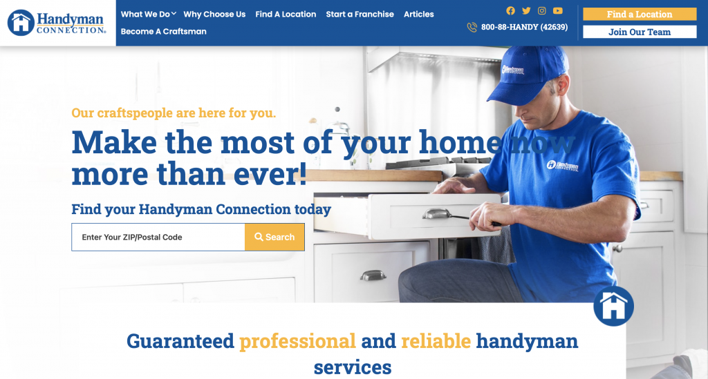 Mr. Handyman not only owns the most engaging website for handyman service in the U.S. but also has various locations all across the country. Due to its extensive coverage area, it is the most widely available handyman service in the United States among all handyman businesses.