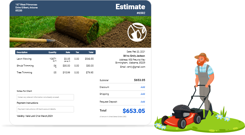 InvoiceOwl is here to help you with creating professional-looking estimates and invoices for your lawn care business! Convert estimates into invoices in a single click and discover exclusive features.