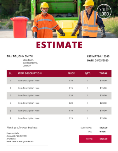 Free Junk Removal Estimate Templates - Download & Use