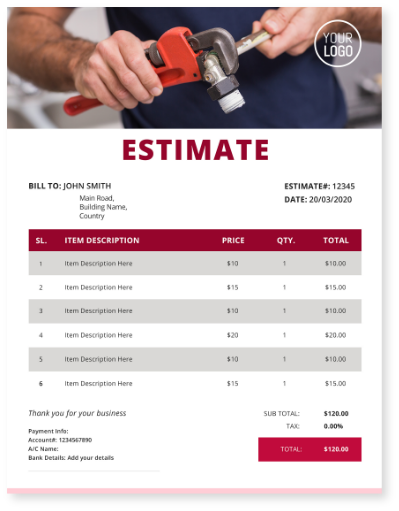 Yes, you can. The estimate templates from InvoiceOwl are 100% free. You can download them in any file format that is available without paying anything. Alternatively, you can use a plumbing estimating app for your company and avoid the manual work!