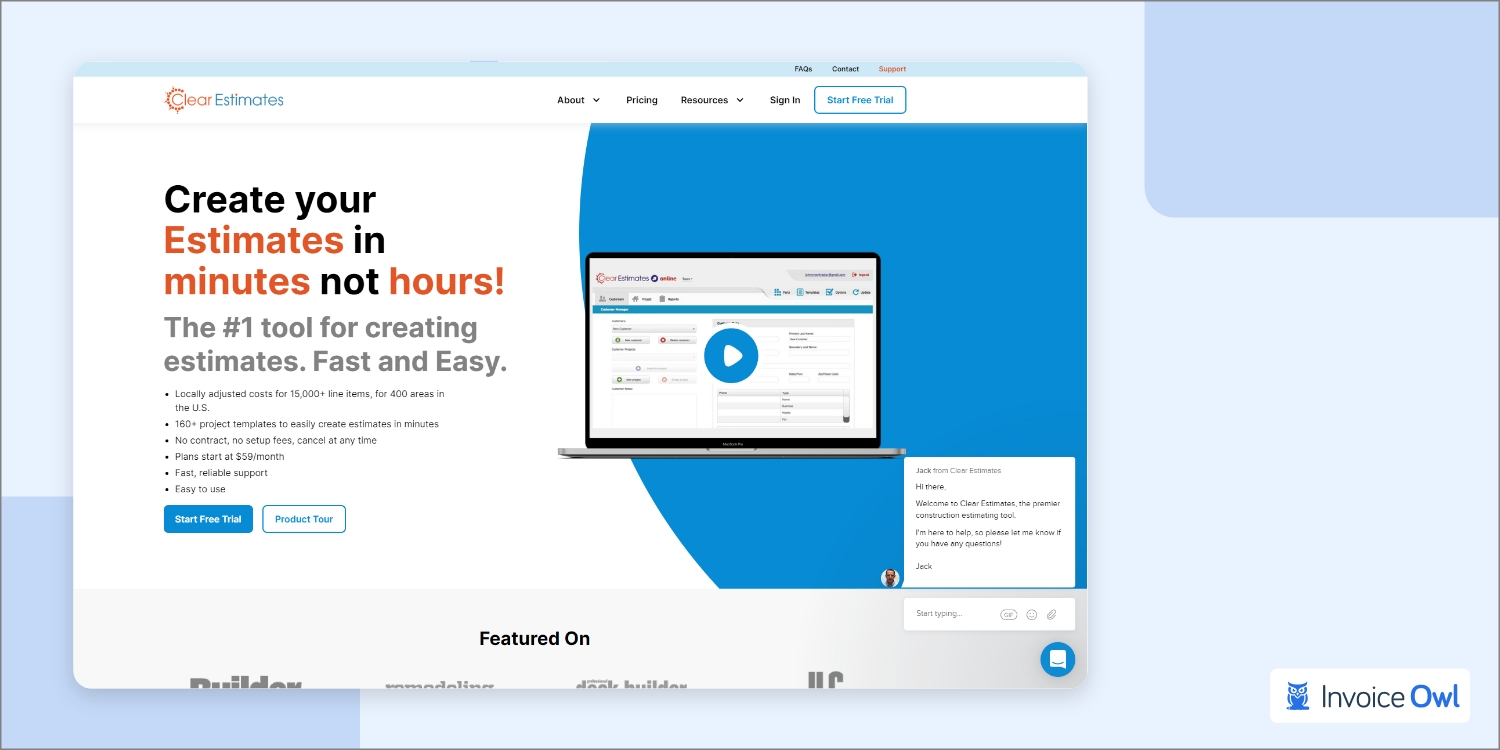Clear Estimates is an excellent option if you are interested in a platform primarily concerned with estimates. Its subscription plan starts at just $59/month and is affordable for small-scale flooring contractors.