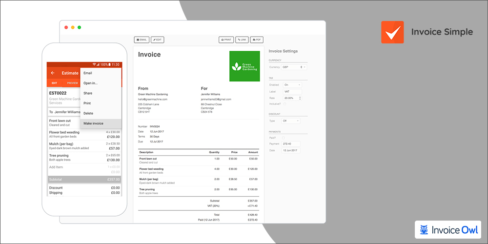 InvoiceOwl: Best for Contractors, Small businesses, Mid-size businesses
