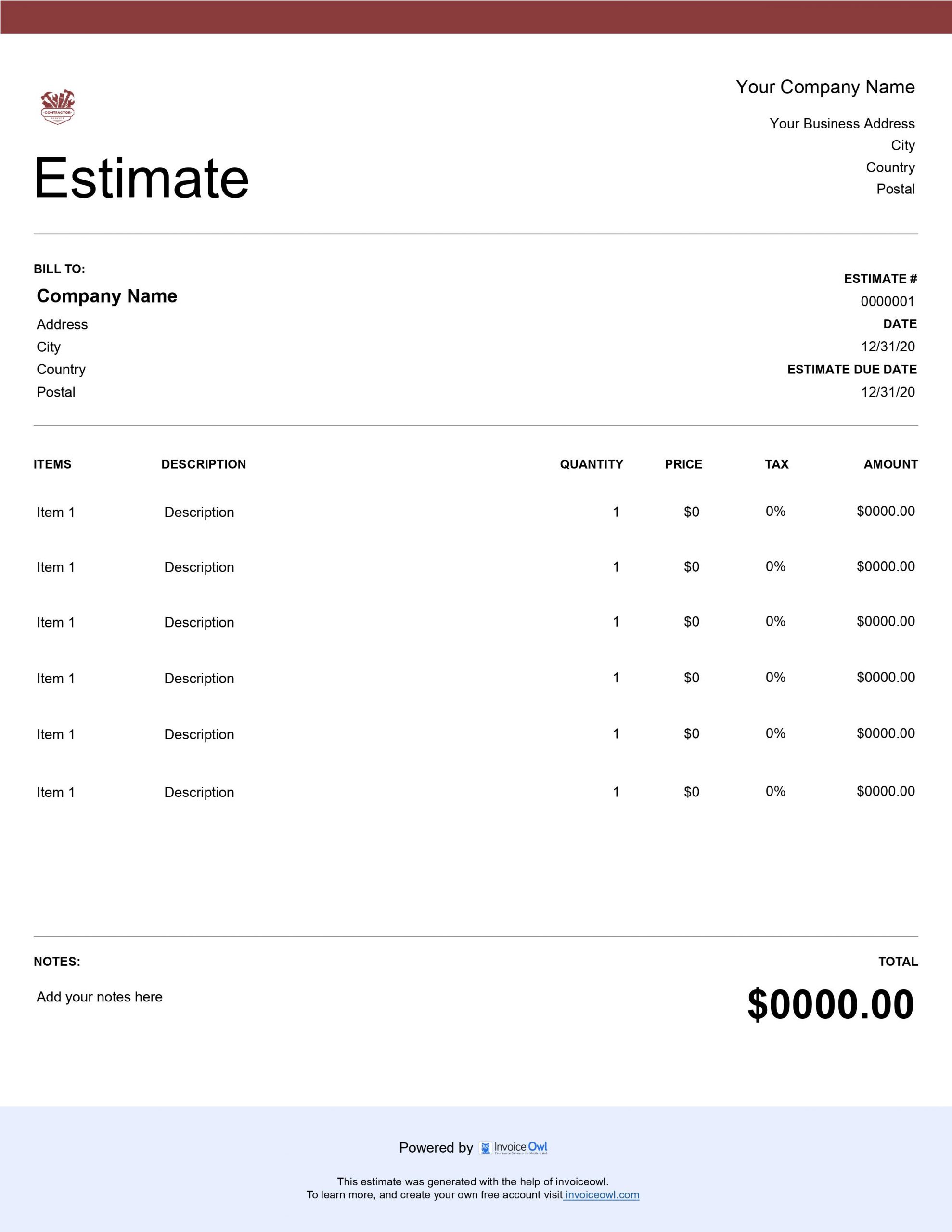 Download Contractor Estimate Template - Create your free estimate online instantly