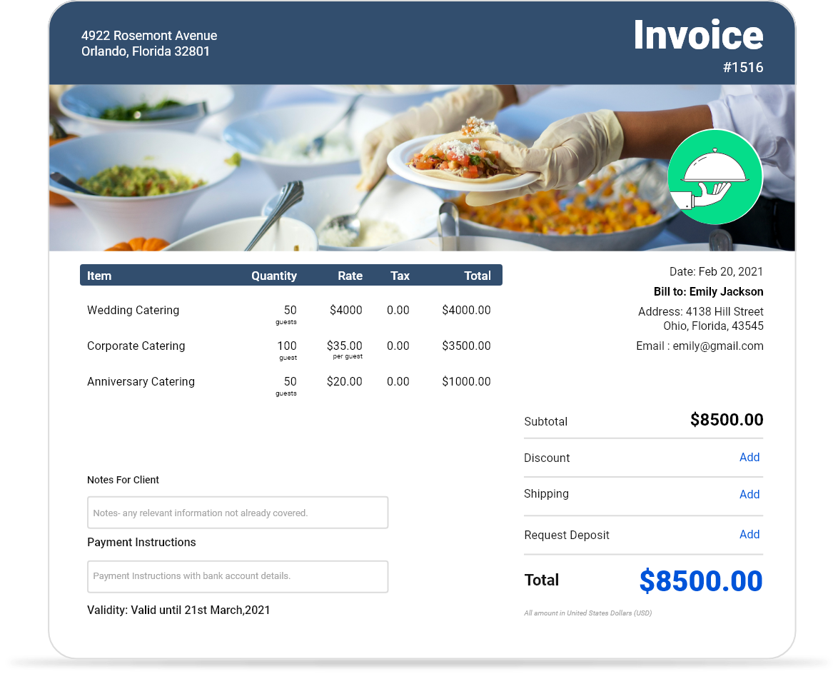 Use invoice templates for limited benefits and invoicing software for unlimited benefits. Transform your catering business with professional automation.