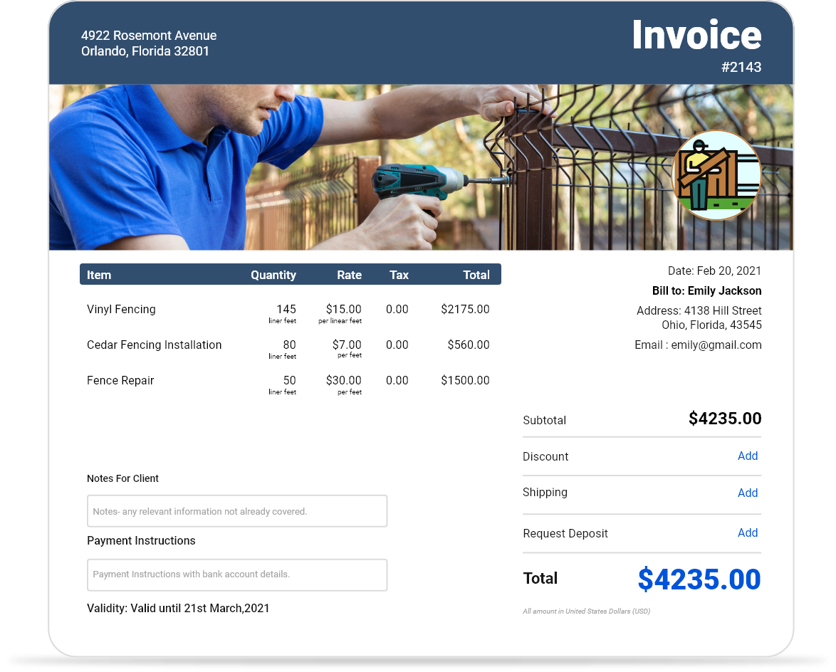 Fencing requires precision, and so does your billing. Create professional-looking, error-free fence invoices that impress clients and get you paid faster.