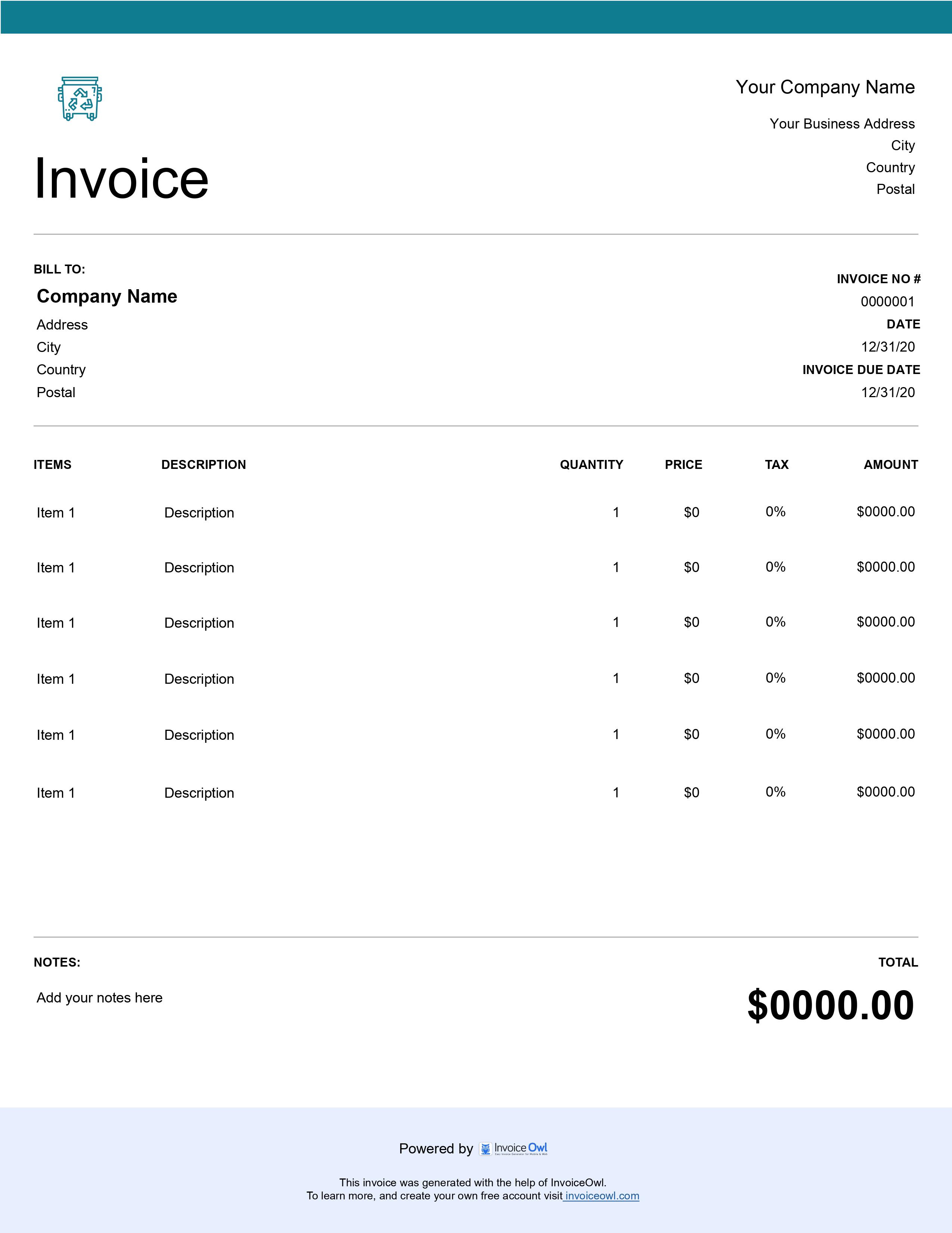 Invoice templates from InvoiceOwl are the best junk removal templates since these free templates meet the expectations of junk removal business owners like you. We are sure you would like the invoice template designed by us.
