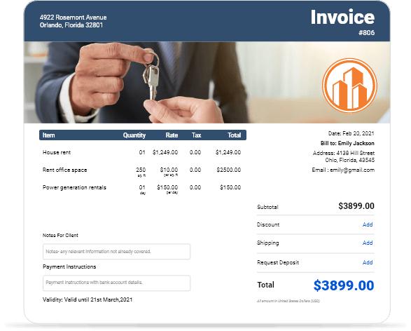 Autofill tenant and property details - Save time with no repetitive data entry required. Store tenant information once and reuse it for recurring rent invoices.