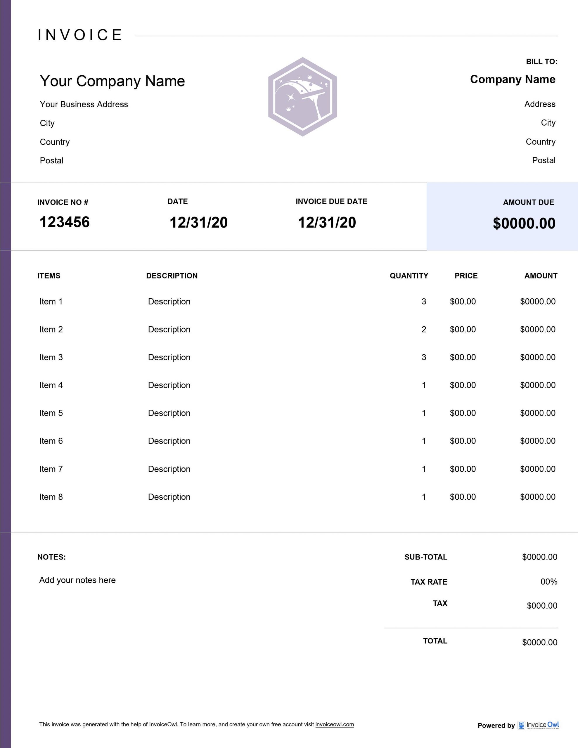 InvoiceOwl offers various customized invoice templates in five different formats: