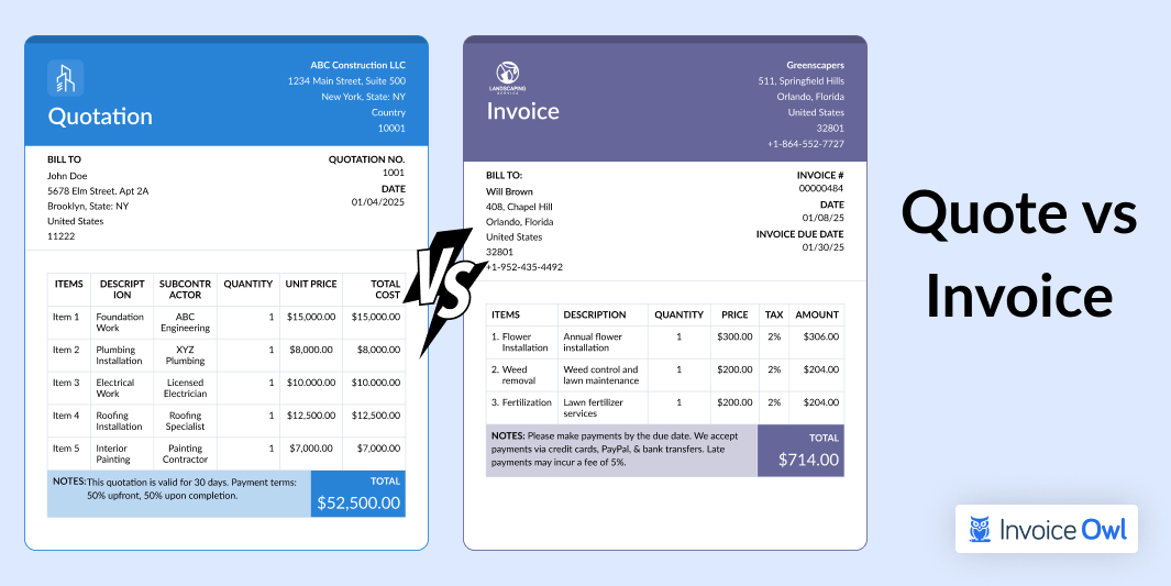 Understand the key differences in quote vs invoice, their purposes, best practices and when to use each in your business transactions.