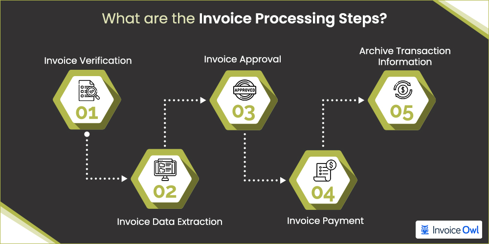 Invoice processing consists of five fundamental steps, which are: invoice verification, invoice data collection, invoice approval, invoice payment and archive transaction information.