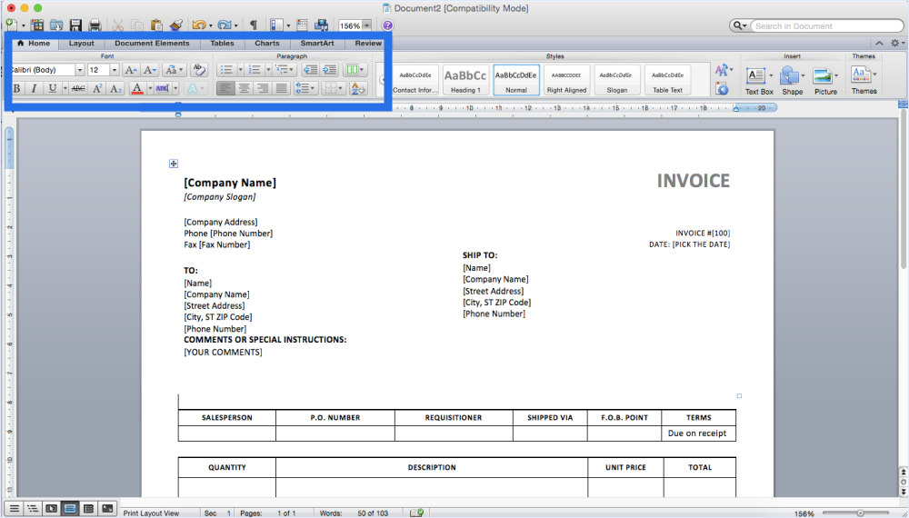 Word templates may not contain all the boxes you need for everything you want to include on your invoice, so you may need to customize your invoice template accordingly. Be sure you have included everything your client needs to know before saving your invoice.