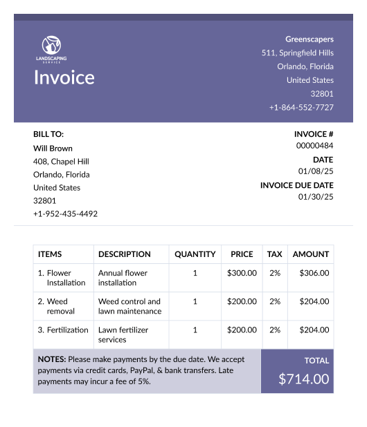 | Details included | Contains final costs, payment terms, due date, and taxes. | Contains estimated costs, scope of work, and potential discounts. |